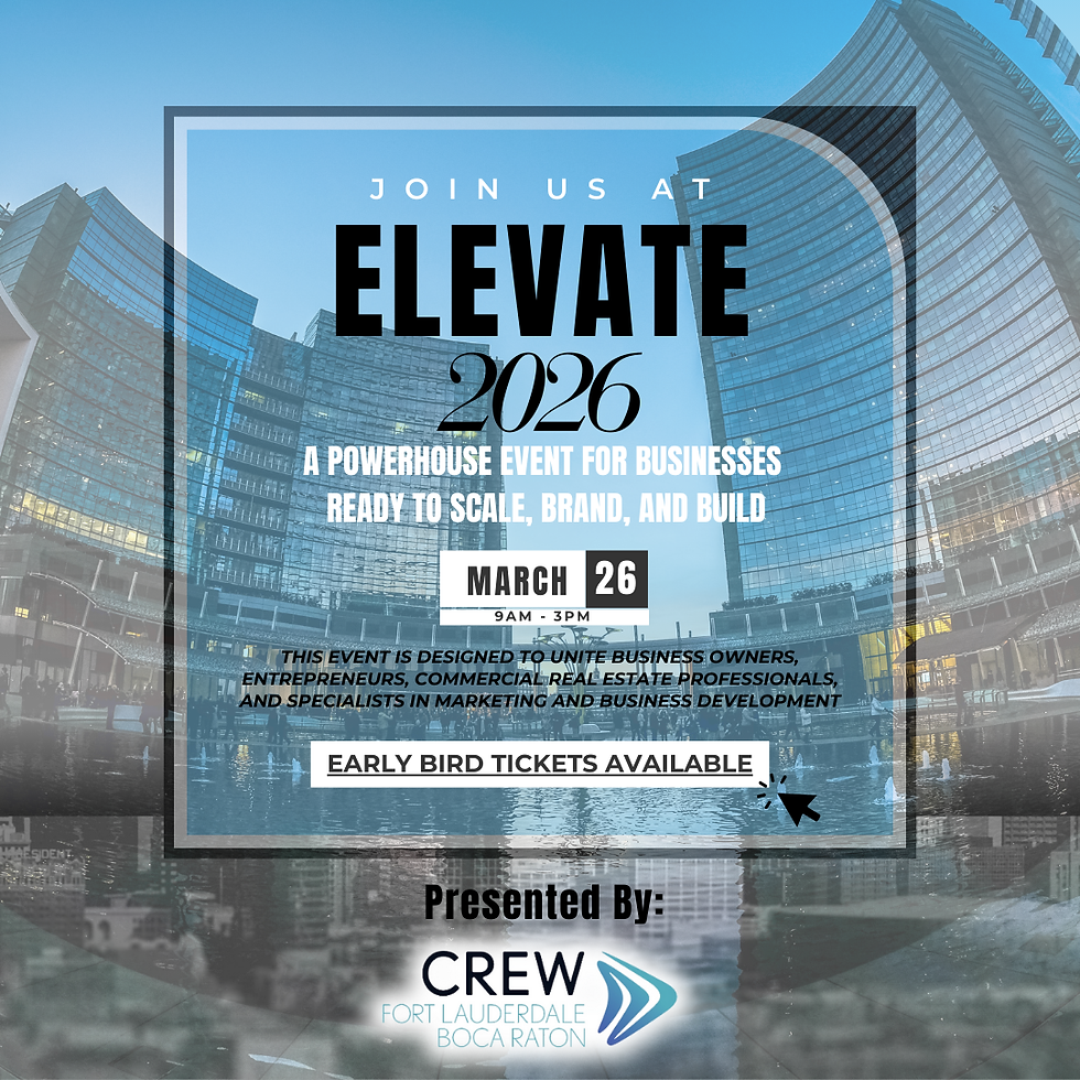 “We are incredibly excited and honored to serve as the presenting sponsor for Elevate 2026,” said Jessica Alvarez, the President of CREW Fort Lauderdale / Boca Raton. “This conference reflects everything we believe in — leadership, growth, and creating meaningful relationships that extend far beyond a single day. Elevate isn’t just an event. It’s a catalyst.”